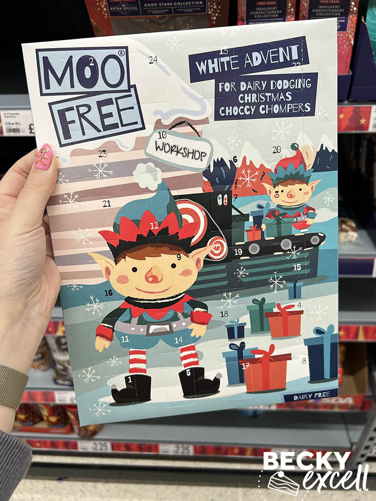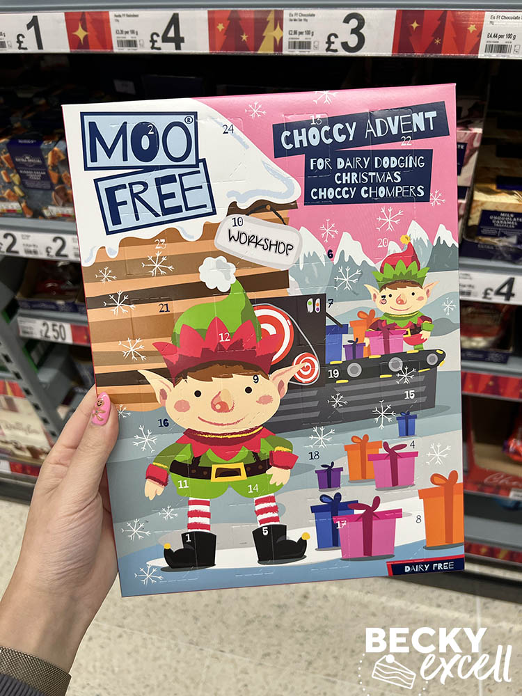 Lidl’s selection is actually a little bit better than Aldi and even has a dairy-free and gluten-free advent calendar too! (The MooFree choccy advent calendar)
