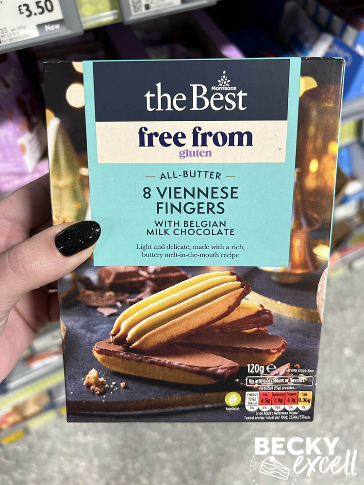 Of course, there’s a few returning favourites in the Morrisons range like the Schar products, but keep an eye out for new products like the Viennese fingers, sticky toffee pudding cookies, chocolate and blood orange cookies and more!