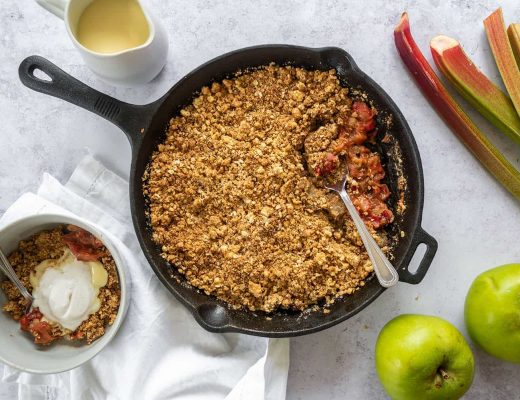 This is something I’ve been baking for YEARS! Here’s my gluten free apple and rhubarb crumble recipe – it’s also vegan and dairy free too. Mark asked me to make this for him recently…
